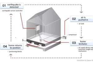 استارتاپ ژاپنی‌Air Danshin خانه‌هایی طراحی کرده که هنگام زلزله با فشار هوا از زمین جدا می‌شوند.
