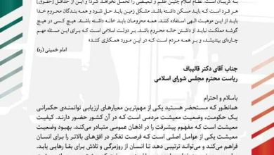 نامه بسیج دانشجویی دانشگاه شریف به قالیباف پیرامون معضل مسکن +اصل نامه